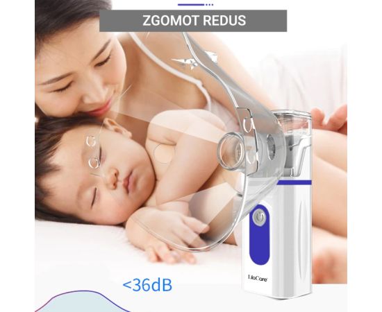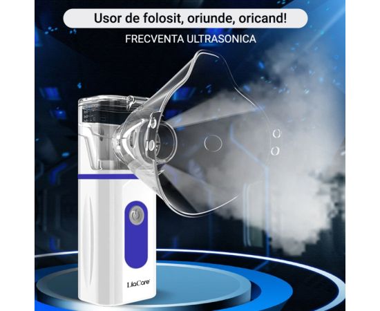 Aparat aerosoli, nebulizator portabil cu ultrasunete, Lila Care, Tehnologie silentioasa, Particule nebulizate 1-4 μm