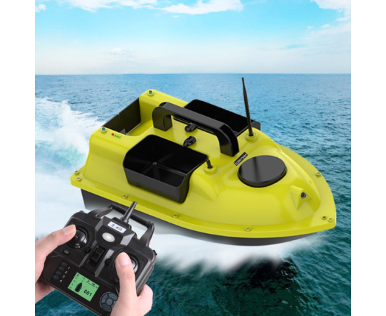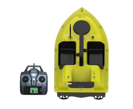 Barca pentru nadit, plantat momeala, cu telecomanda, Loomax, 3 cuve, capacitate 2 kg, raza maxima 500 m, cu GPS, galbena