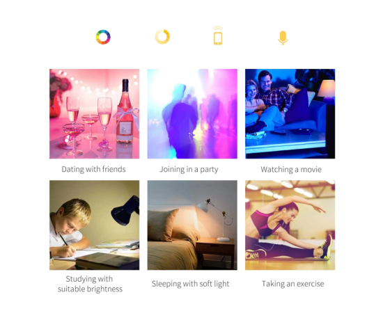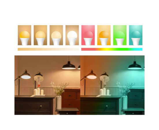 Poti ajusta luminozitatea becului smart LED sau poti opta pentru o lumina colorata din paleta RGB;