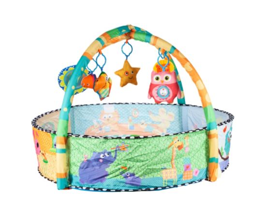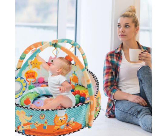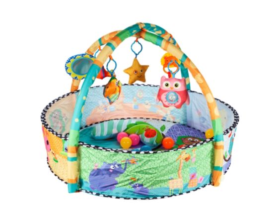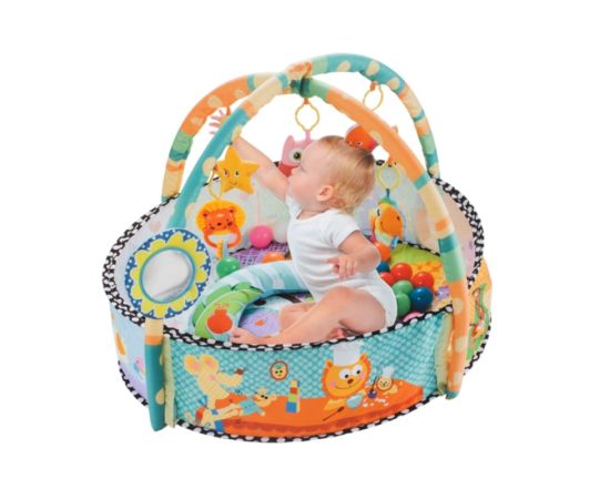 Centru de activitati 2 in 1 bebelusi, Karemi, 5 jucarii detasabile, 30 bile multicolore, saltea moale si multicolora