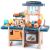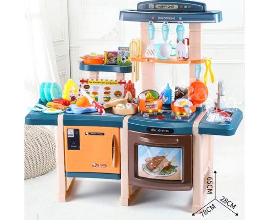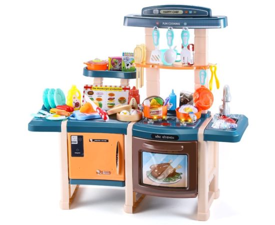 Bucatarie Dubla Completa Multifunctionala Karemi, Chiuveta cu Circuit de Apa, Masina de Spalat Vase, Cuptor, Oala sub Presiune, Ustensile, Produse, Legume, Lumini si Sunete, 42 piese, Albastru multicolor