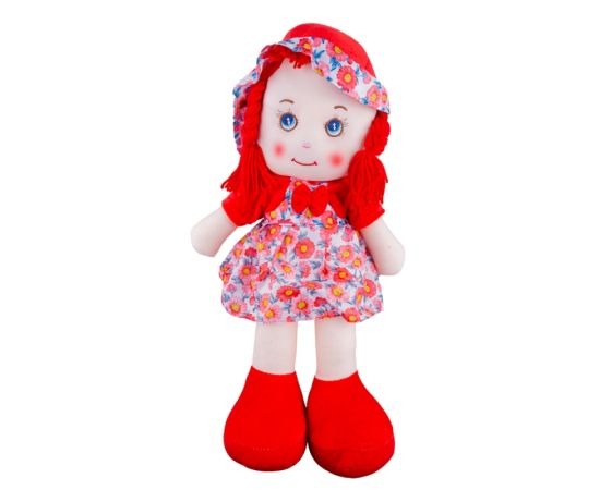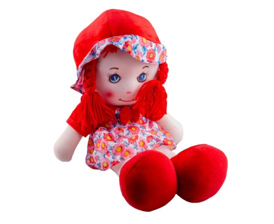 Papusa de plus Karemi, cu cosite, 45 cm, rosie