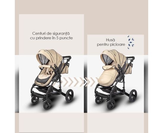 Pentru nou-nascuti (0 – 6 luni) este recomandata folosirea unitatii transformabile in pozitie de landou, iar dupa varsta de 6 luni, landoul se poate transforma in parte sport cu ajutorul chingilor montate pe unitatea caruciorului.