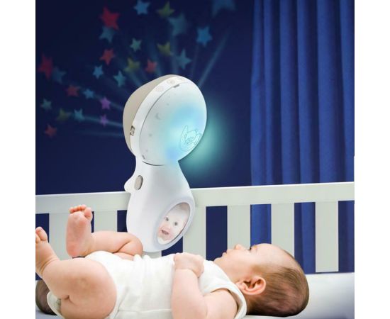 Micutul tau visator poate dormi linistit pe tot parcursul noptii cu proiectorul muzical 3 in 1. De la 0-5 luni, utilizati aceasta jucarie ca si carusel muzical. De la 6 la 18 luni, devine o lumina de noapte pentru patut si un proiector. Dupa 18 luni, utilizati acest produs ca si proiector de lumina. Proiectorul cu stele lumineaza camera, atenuand frica de intuneric a copilului dumneavoastra, in timp ce caruselul muzical reda melodii linistitoare. Produsul dispune, de asemenea, de o oglinda reflectorizanta si de un temporizator cu oprire automata de 20 de minute.
