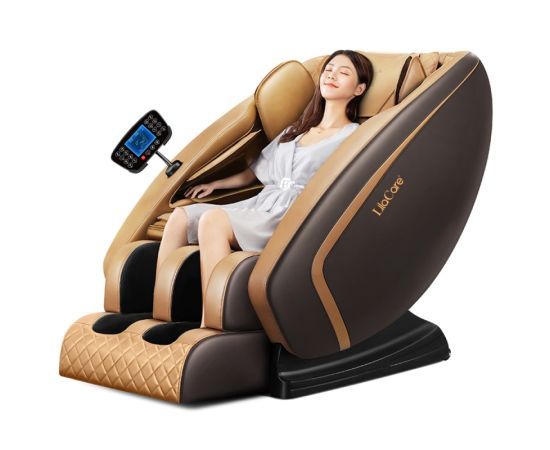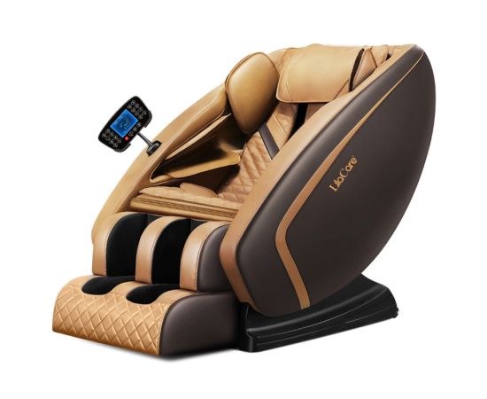 Fotoliu de masaj Fantasy II, Lila Care, cu incalzire, functie bluetooth audio, display, zero gravity, piele ecologica, Bej/Maro