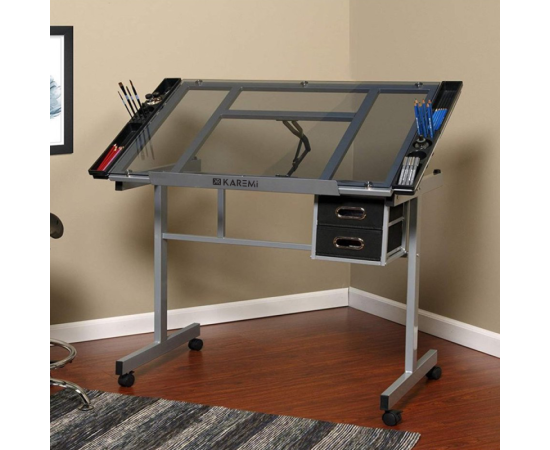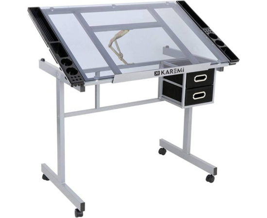 Masa pentru desen tehnic Karemi, cu planseta din sticla, reglabila