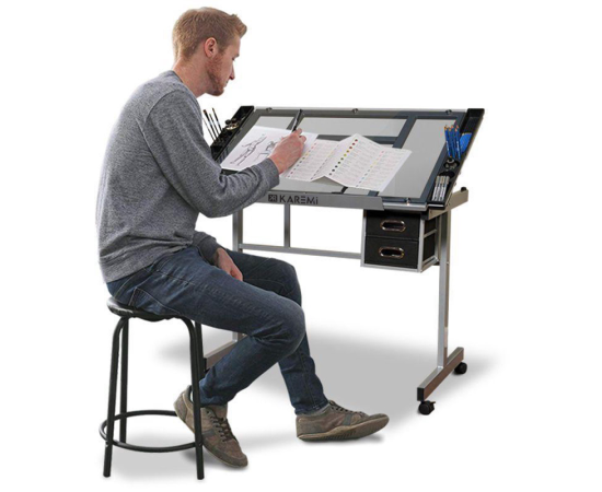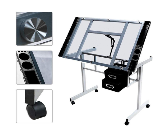 Acest birou reglabil este statia de lucru ideala pentru artisti si desenatori. Are o suprafata de lucru mare din sticla securizata.Ar trebui sa fie nelipsit pentru proiectanti, desenatori benzi animate sau desenatori tehnici.
