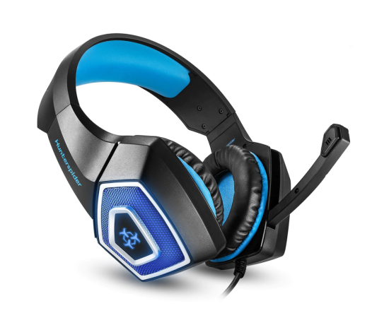 Casti Gaming HunterSpider V1 Pro, Super Deep Bass, 7 Culori Lumina LED, albastru