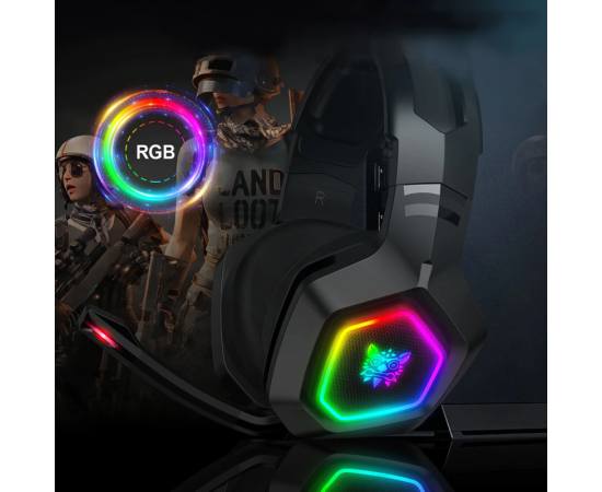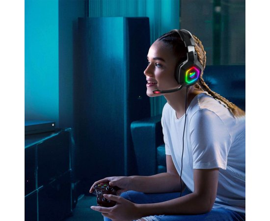 Casti gaming stereo Onikuma K10 negru cu LED multicolor