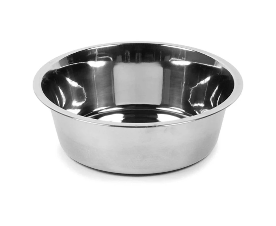 Castron din inox pentru caini si pisici. Poate fi utilizat atat pentru hrana (umeda sau uscata), cat si pentru lichide. Este inoxidabil, usor de curatat, nu modifica gustul alimentelor si nu retine mirosul acestora. Capacitate: 470 ml. Diametru: 13 cm.