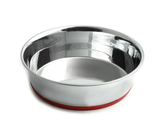 Castron din inox pentru caini si pisici, cu baza de cauciuc antiderapant. Poate fi utilizat atat pentru hrana (umeda sau uscata), cat si pentru lichide. Este inoxidabil, usor de curatat, nu modifica gustul alimentelor si nu retine mirosul acestora. Capacitate: 900 ml. Diametru: 17 cm.