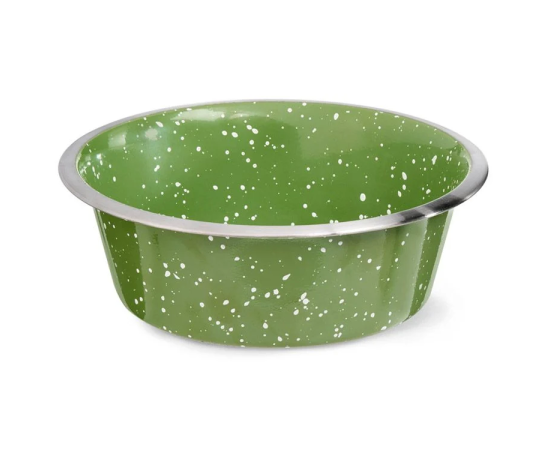 Castron din inox pentru caini si pisici, verde cu puncte albe. Poate fi utilizat atat pentru hrana (umeda sau uscata) cat si pentru lichide. Este inoxidabil, usor de curatat, nu modifica gustul alimentelor si nu retine mirosul acestora. Capacitate: 500 ml. Diametru: 13 cm.