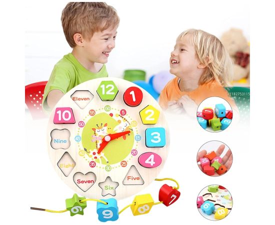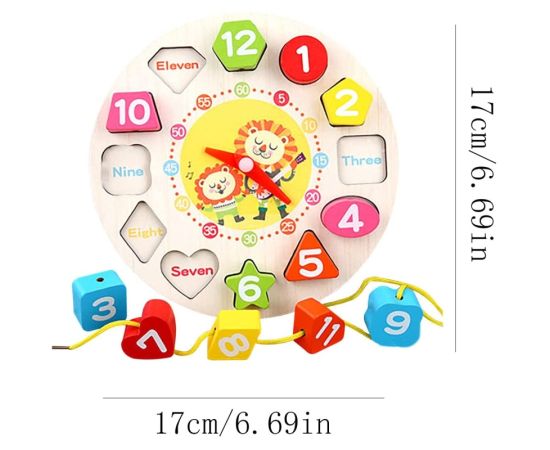 Ceasul de lemn Karemi este un mod unic de a invata timpul. Un puzzle cu ceas din lemn colorat, cu 12 forme din lemn care se potrivesc in partile alocate. Realizat special pentru a-i ajuta pe copii sa stapaneasca conceptul de citire a orei, invatand in acelasi timp culorile si formele. Acest ceas este fabricat din lemn de buna calitate. Vopsea netoxica folosita.
