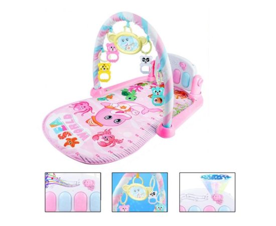 Cu un design unic, setul include o saltea de joaca, un pian detasabil, 4 jucarii detasabile si o oglinda speciala pentru copii si este special conceputa pentru a dezvolta abilitati cognitive, senzoriale si altletice pentru bebelusi.