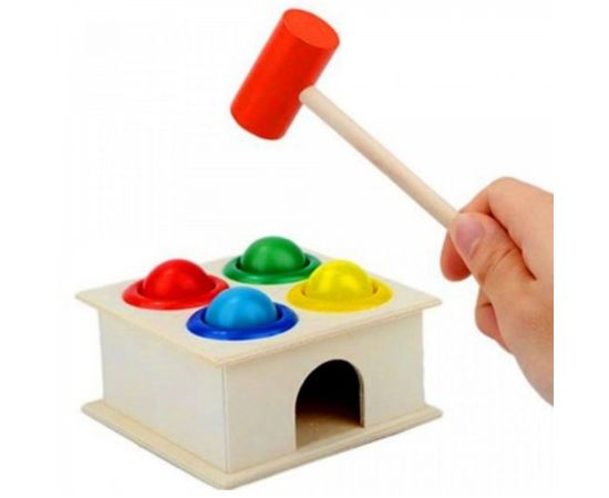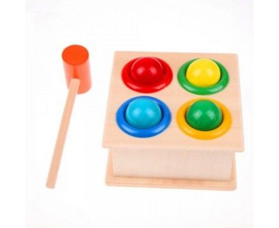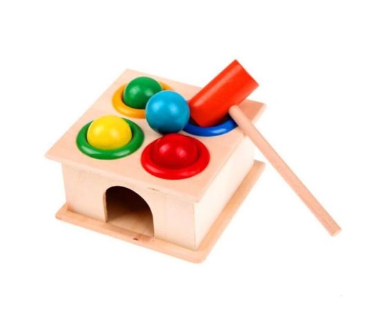 Cutia permanentei Montessori, cutie din lemn cu bile si ciocan – jucarie eductiva si senzoriala din lemn