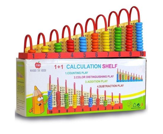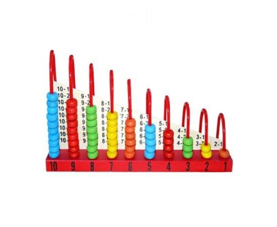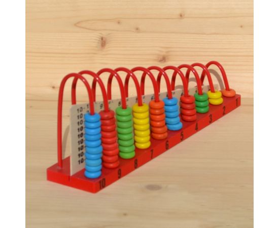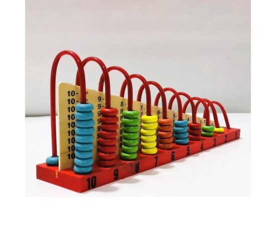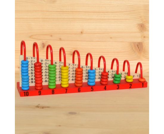 Numaratoarea din lemn cu bile colorate este o jucarie ideala pentru stimularea atentiei copilului. Cel mic va trebui sa identifice culorile si cifrele. Numaratoarea este prevazuta cu tije metalice de culoare rosie pe care se gasesc bile colorate corespunzatoare cifrei de la 1 la 10. Cifrele sunt dublate pe ambele parti. Aceasta jucarie este folositoare invatarii notiunilor elementare de adunare si scadere. Dimensiuni 30x14x7 cm.