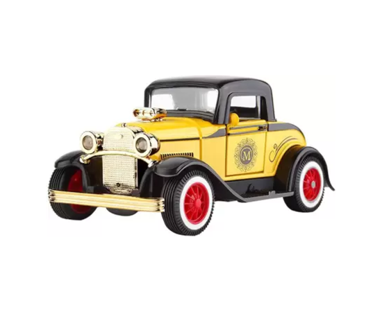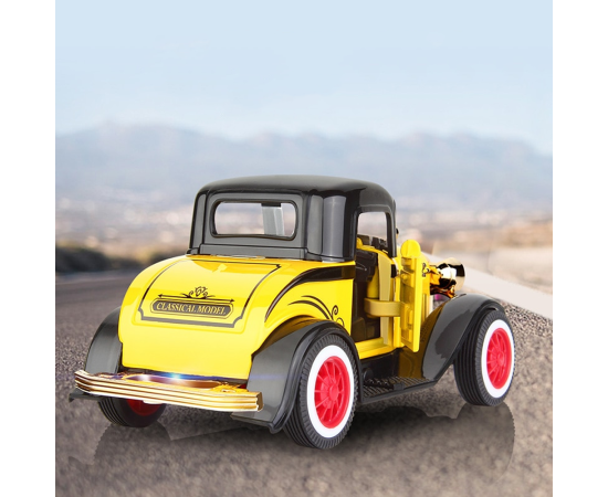 Masina de jucarie Karemi, masini de colectie, de epoca, cu lumini si sunete, galben