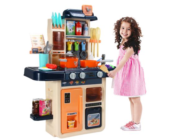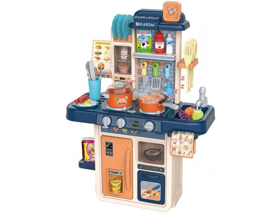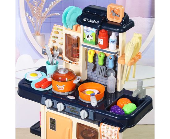 Bucatarie pentru copii Karemi, finisaje realiste, accesorii incluse, 47x23x63 cm, bej cu blat albastru