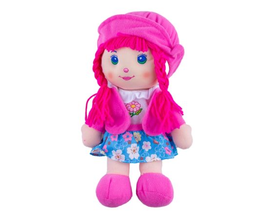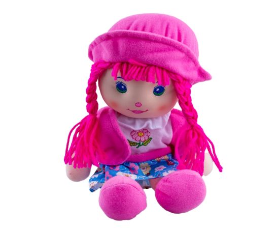 Papusa de plus Karemi, cu fusta si cosite, 28 cm, roz