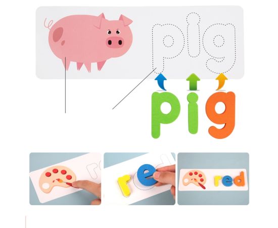 Puzzle Karemi, joc de ortografie, spelling game, joc educativ cu litere si cifre, joc invatare limba engleza, K01B-10149