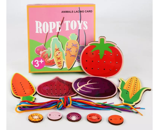 Puzzle educativ cu snururi Karemi, model legume, multicolor