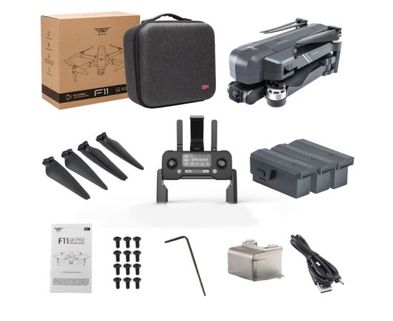 Drona Loomax F11, Camera Ultra HD 4K PRO, Gimbal Electronic cu 2-Axe, GPS, Rezistenta la vant, timp de zbor 26 min, Pliabila, Sold de card, Geanta de transport