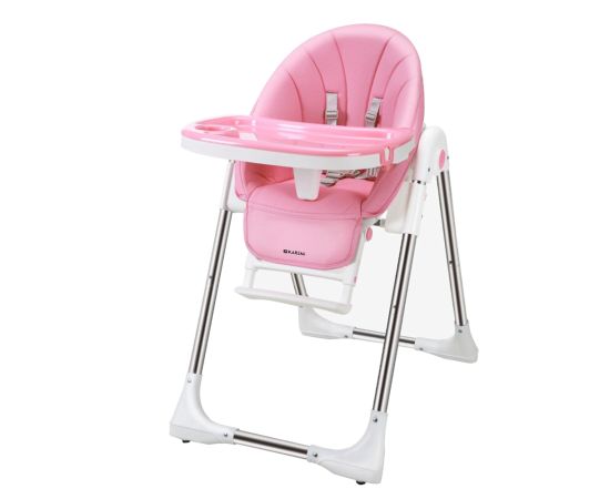 Scaun de masa Karemi, pentru bebe, multifunctional, din piele ecologica, cu tavita si suport picioare, roz