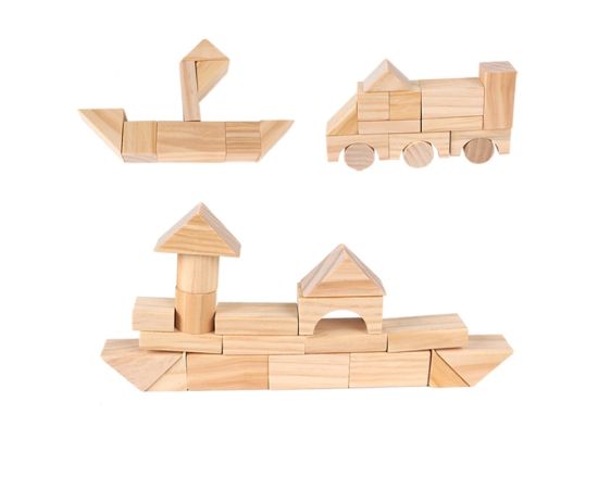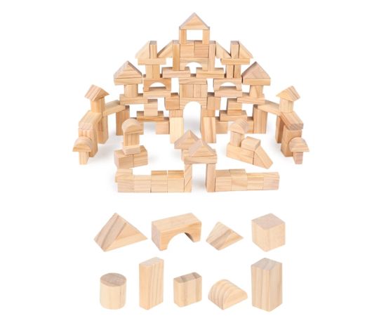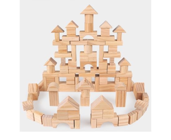 Cuburi de constructie Karemi, din lemn, 100 piese