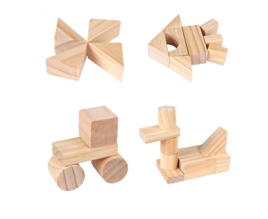 Cuburi construcție lemn cu o varietate de forme - 100 piese .