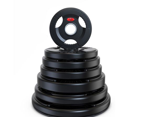 Greutatea de 5 kg este fabricata din fier, pentru rezistenta indelungata, cu un invelis cauciucat placut la atingere. Greutatea este prevazuta cu manere aderente pentru o prindere sigura si confortabila, impiedicand alunecarea discului din maini. Datorita manerelor practice, puteti folosi discul ca si gantera sau ca greutate propriu-zisa. Materialele din care este fabricata greutatea, ii confera rezistenta la uzura si la impact. Principalele avantaje ale greutatii sunt: designul placut, inelul metalic rezistent la uzura, manerele ergonomice, rezistenta la impact. Discul olimpic este compatibil cu barele care au diametrul de 50 mm.
