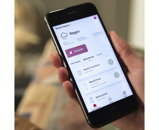 Cu priza WLAN consumatorii electrici, cum ar fi lampile standard, pot fi actionati cu usurinta prin intermediul aplicatiei sau al controlului vocal