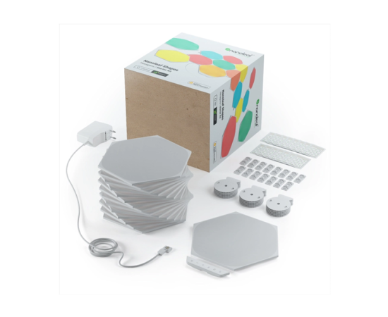 Set panouri luminoase modulare inteligente Nanoleaf Shapes Hexagons Starter Kit, LED RGBW, Wi-Fi, 15 bucati
