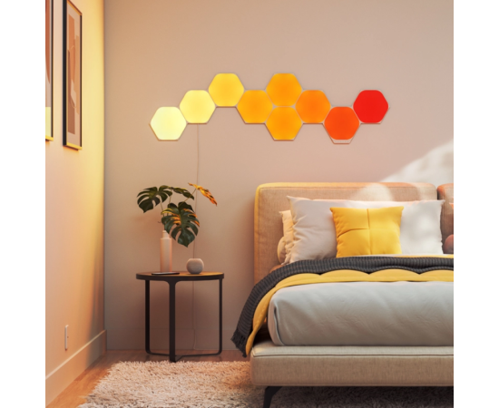 Pentru instalare, trebuie doar sa fixezi pe perete panourile cu banda dublu-adeziva inclusa, fara gauri. Nanoleaf Shapes sunt proiectate cu tehnologia Connect+ pentru a functiona impreuna cu alte forme din gama, oferind posibilitati nelimitate de iluminare, design si integrare cu accesoriile casnice din decorul locuintei tale inteligente.