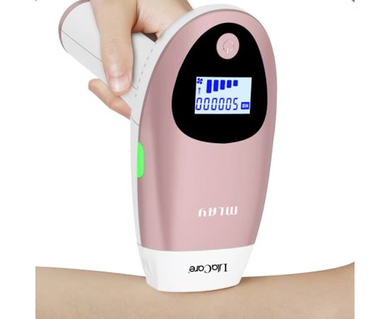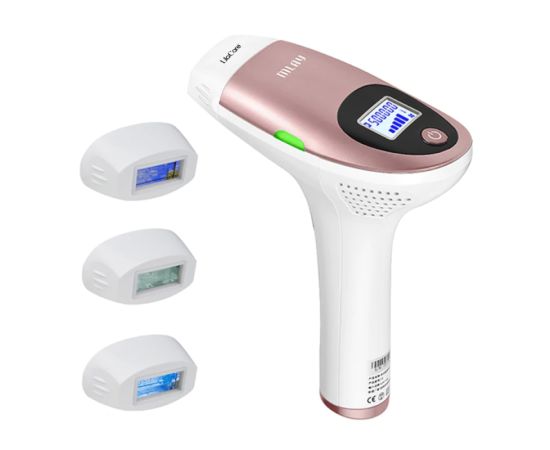 Epilator IPL cu maner, Lila Care, 500.000 pulsatii, display LCD, 5 trepte de putere, 3 capete, rose gold