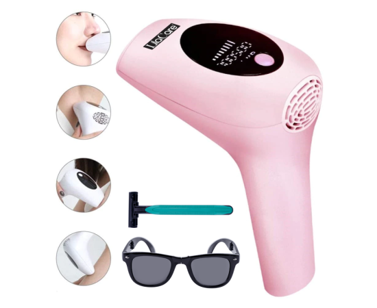Epilator IPL Lila Care cu maner, epilare definitiva, 900.000 pulsatii, cu display LCD, 8 trepte de putere, roz