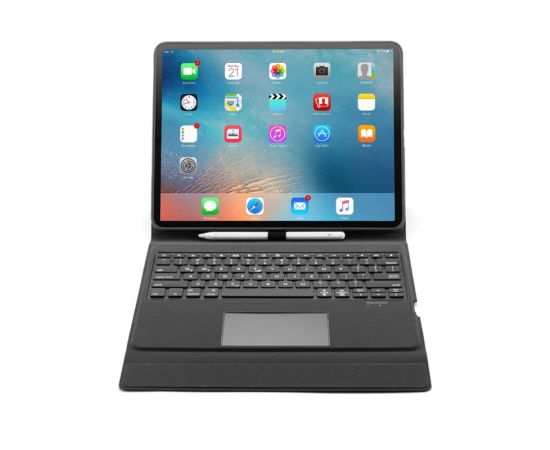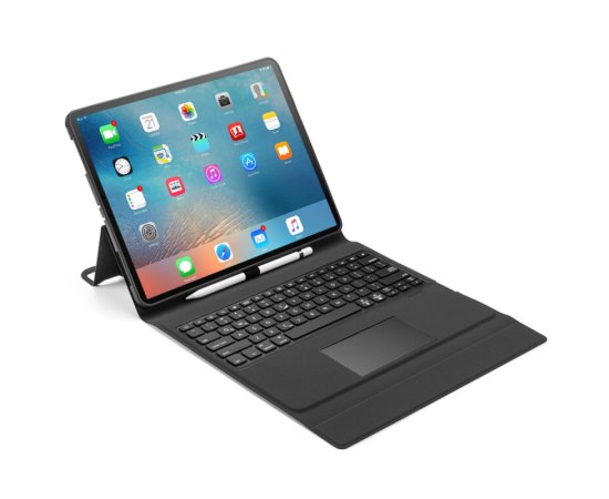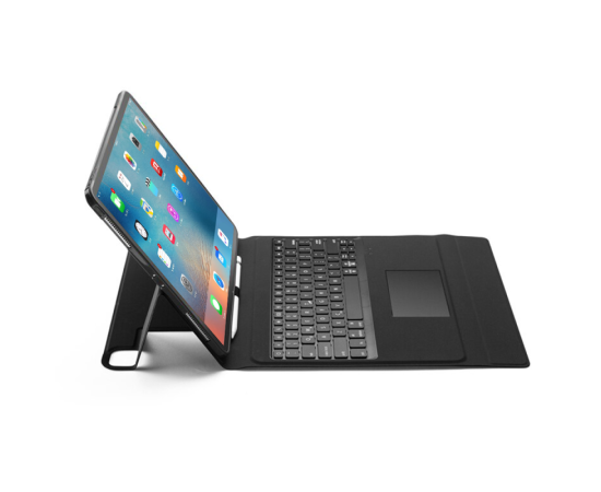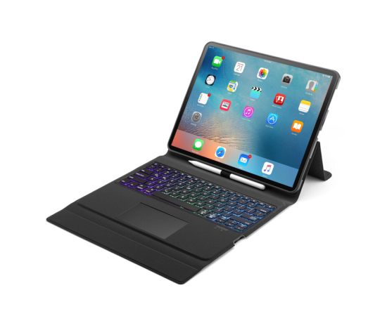 Husa Loomax tip mapa, tastatura Bluetooth, pentru iPad Pro 12.9 inch, cu 7 culori si mouse touchpad, suport creion Apple, neagra