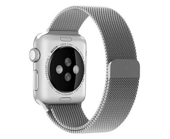 Această bratara este destinata utilizatorilor de Apple Watch 1/2/3/4/5 fiind de culoare argintie. Datorita constructiei formate din zale mici, bratara se muleaza perfect pe orice incheietura, prinderea fiind asigurata de un magnet puternic, neexistand riscul ca aceasta sa se desfaca.