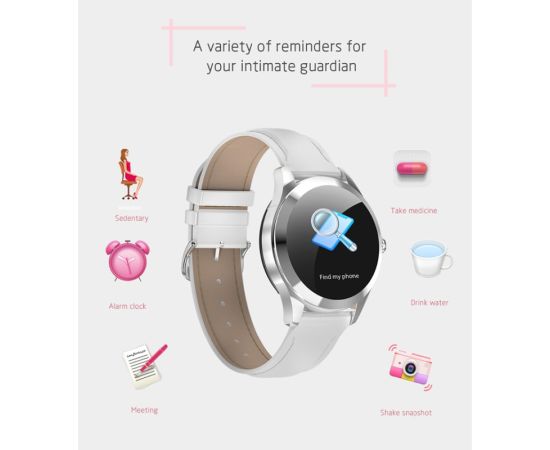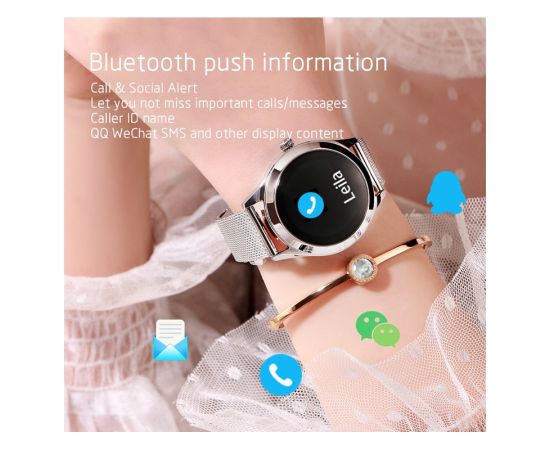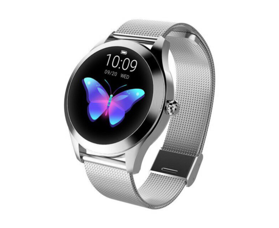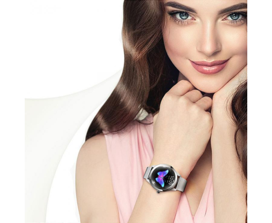 Ceas smartwatch Loomax KW10, pentru femei, monitorizare ciclu menstrual, ritm cardiac, pedometru, sedentarism, somn, notificari instant, bratara metalica, rezistent la apa ip68, vibratii, multi sport, silver