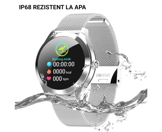 Ceas smartwatch loomax KW10, monitorizare ciclu menstrual, ritm cardiac, pedometru, sedentarism, somn, notificari instant, bratara metalica, rezistent la apa ip68, vibratii, multi sport, silver