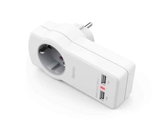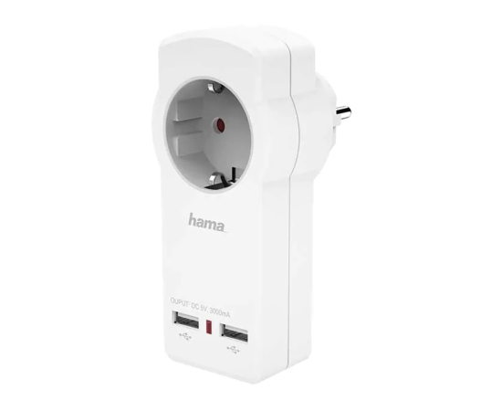 Incarcator retea Hama, 2xUSB, 1 priza, alb