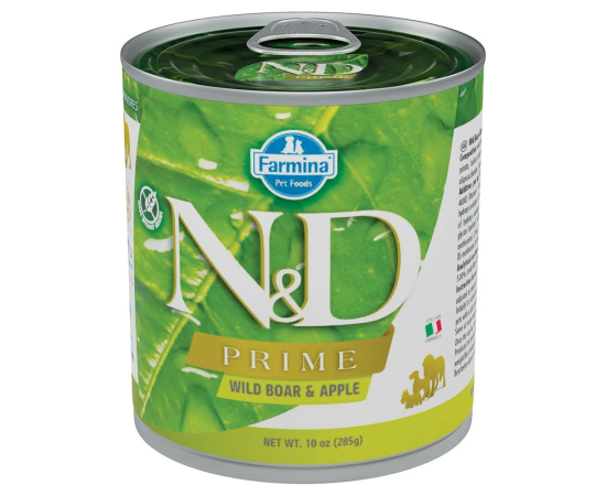 ND Prime este gama Farmina cu 98% proteine de origine animala, 0% conservanti artificiali, 0% cereale. Previne obezitatea si diabetul datorita indicelui glicemic scazut obtinut prin absenta cerealelor, permitand o eliberare treptata de energie pe parcursul zilei. Tehnologia Farmina asigura un proces de gatire bland, cu abur, realizat intr-o singura etapa pentru a pastra maximul de nutrienti. Reteta este bogata in zinc, fara gluten, fara cartofi, soia, hormoni, antibiotice sau conservanti artificiali. Toate formularile sunt dovedite stiintific si testate clinic prin cercetari certificate Cruelty-Free. Cutii complet reciclabile fara BPA, cu etichete realizate cu hartie care provine din paduri exploatate in mod responsabil.