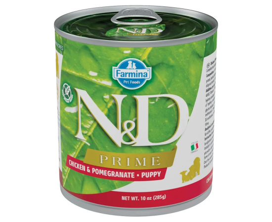 ND Prime este gama Farmina cu 98% proteine de origine animala, 0% conservanti artificiali, 0% cereale. Rodia este o sursa bogata de vitamine, potasiu si fosfor si antioxidanti. Previne obezitatea si diabetul datorita indicelui glicemic scazut obtinut prin absenta cerealelor, permitand o eliberare treptata de energie pe parcursul zilei. Tehnologia Farmina asigura un proces de gatire bland, cu abur, realizat intr-o singura etapa pentru a pastra maximul de nutrienti. Reteta este bogata in zinc, fara gluten, fara cartofi, soia, hormoni, antibiotice sau conservanti artificiali. Toate formularile sunt dovedite stiintific si testate clinic prin cercetari certificate Cruelty-Free. Cutii complet reciclabile fara BPA, cu etichete realizate cu hartie care provine din paduri exploatate in mod responsabil.