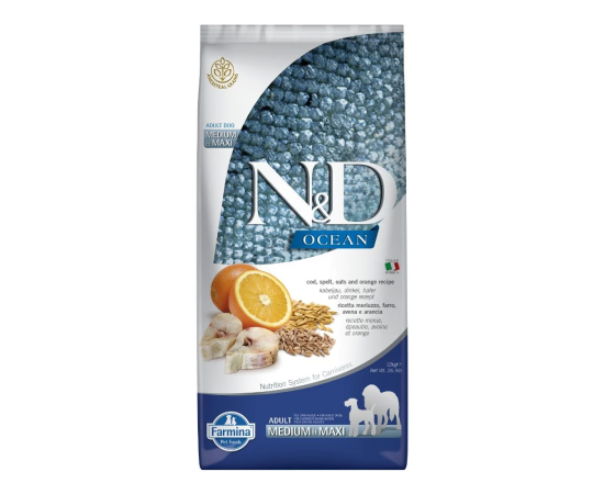 Hrana Uscata Caini ND Ocean Adult Medium Maxi Cod, Alac, Ovaz si Portocale 12kg