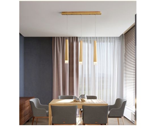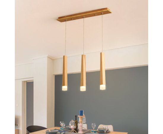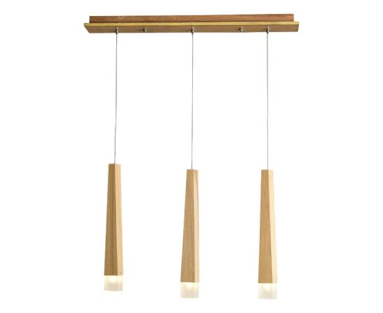 Lustra din lemn, LED, 15W, din lemn natural cu 3 abajururi