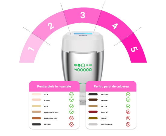 - Indepartare de lunga durata a parului cu tehnologie IPL Tratament specializat pentru diferite zone ale corpului;