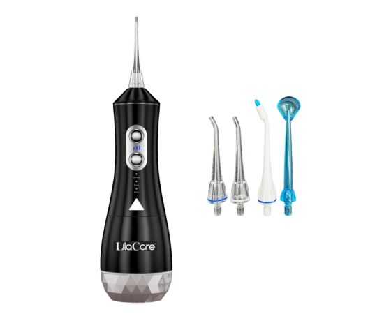 Irigator oral Lila Care, portabil, USB, jet de apa dentar, rezervor de apa impermeabil, 320 ml, rezistent la apa, 4 capete inlocuibile, Negru, 506
