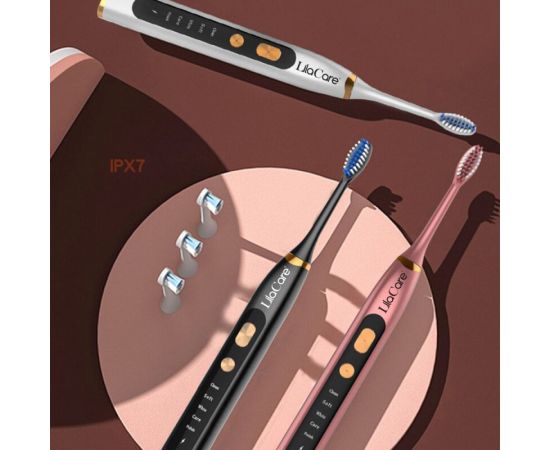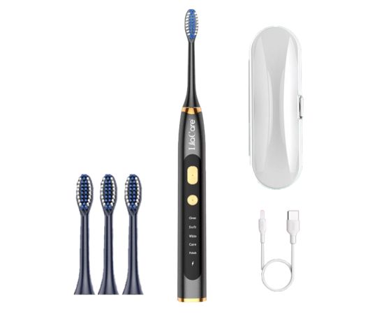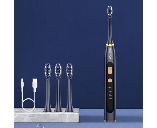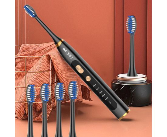 Periuta de dinti electrica LilaCare, rezistenta la apa, incarcare USB, 5 moduri de vibratii, 4 capete inlocuibile, neagra