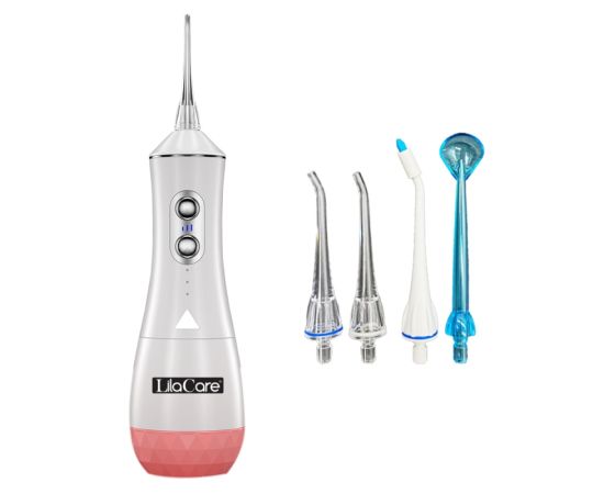 IIrigator oral Lila Care, portabil, USB, jet de apa dentar, rezervor de apa impermeabil, 320ML, rezistent la apa, 4 capete inlocuibile, Alb, 505