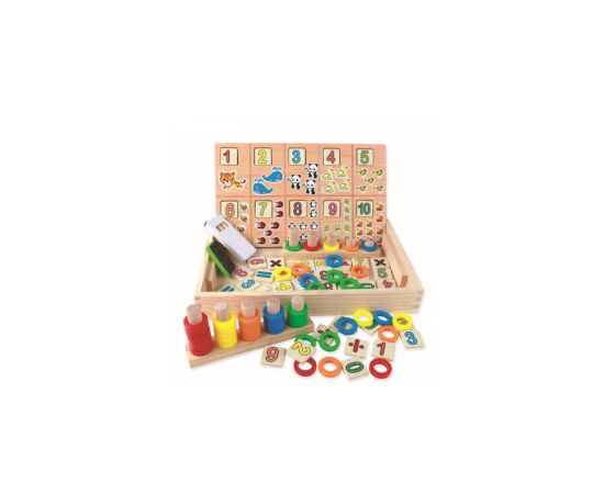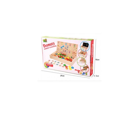 Joc educativ din lemn Montessori-Donuts number-crunching cu tablita din lemn cu 2 fete.