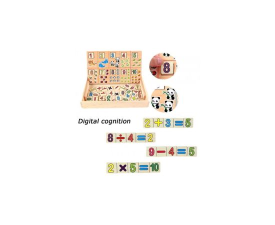 Tabla de invatare are doua laturi, o parte fiind alocata pentru matematica iar cealalta latura este o tabla neagra unde copiii pot scrie pe ea.